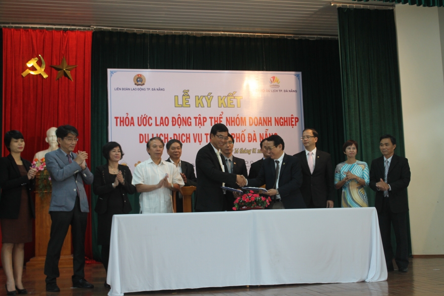 | Viet Nam's first multi-employer collective agreement was signed yesterday by four tourism enterprises in Da Nang. It is expected to benefit 700 workers in the tourism sector. — Photo laodong.com.vn |
