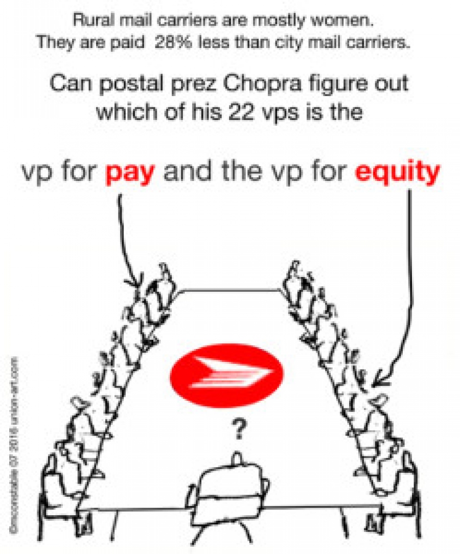 CUPW, with its commitment to equality between male and female workers, as well as full and part time workers, that goes back to the 1970s, is unlikely to act any differently. Indeed, when faced with an attempt by management to create a new lower classification in conjunction with the introduction of new technology back in 1974, they struck illegally to block it. For the same reason, CUPW is unlikely to simply abandon its demand for equal pay for rural carriers.