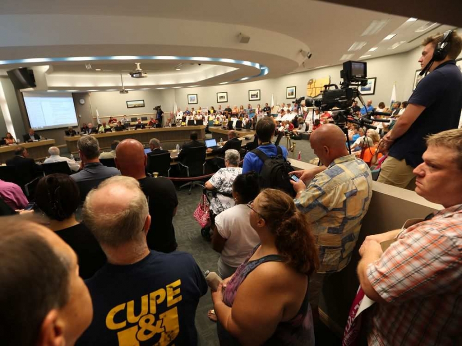 Local union members showed support for striking library workers at the Essex County Council meeting in Essex Aug. 10, 2016.JASON KRYK / Windsor Star
