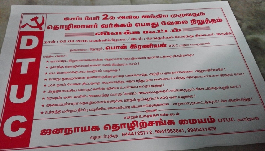 India : 'DTUC Holds Public Meeting at Redhills in solidarity with National General Strike on 2nd September
