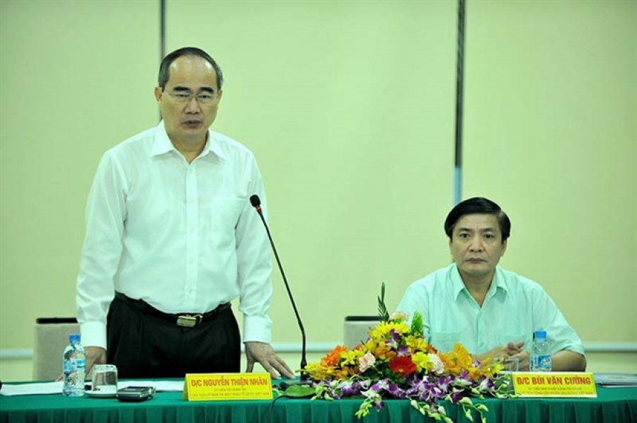 | Nguyễn Thiện Nhân (L), Chairman of the Fatherland Front Central Committee, has urged the Việt Nam General Confederation of Labour (VGCL) to better protect the interest of workers ahead of pressures from |