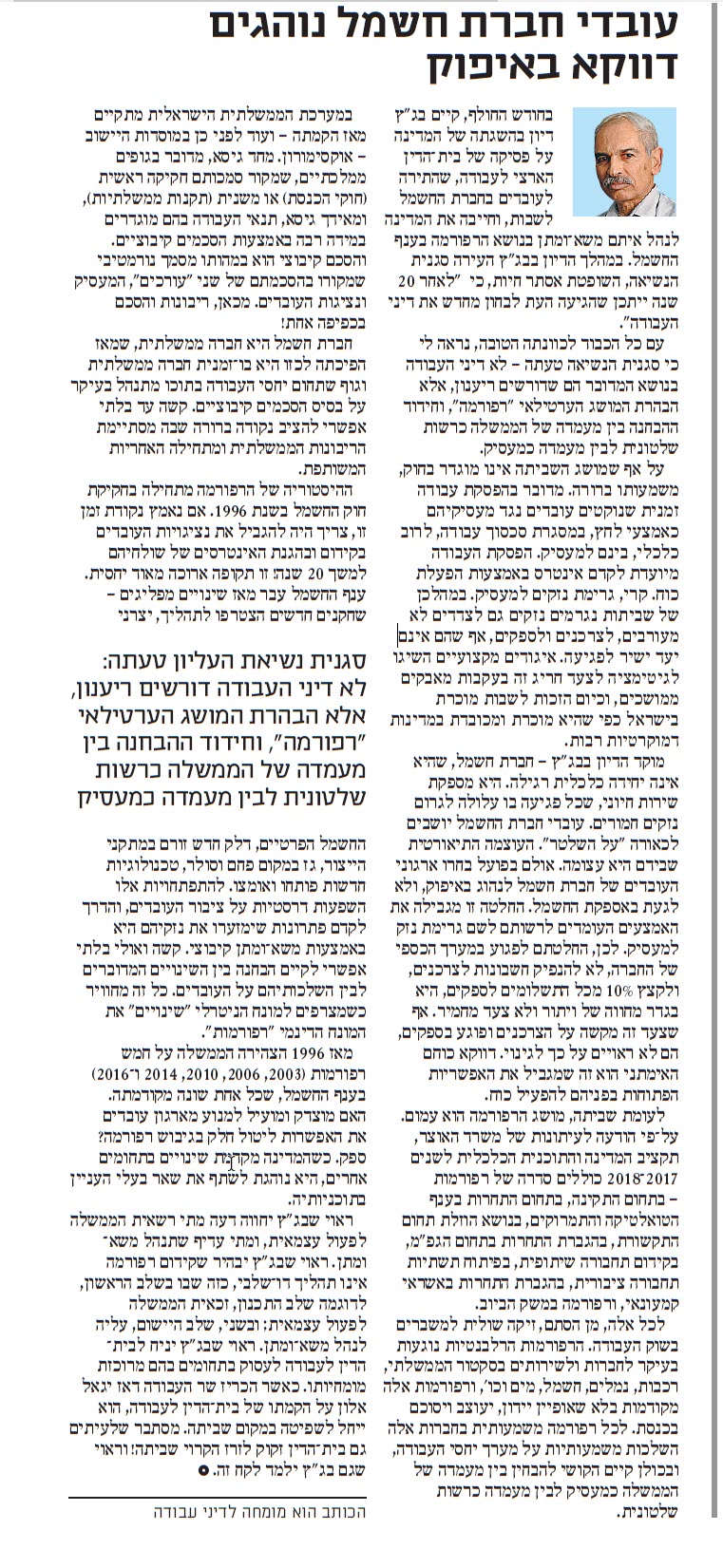 גלובס המהדורה המודפסת 06/08/2017 עובדי חברת החשמל נוהגים דוקא באיפוק / פרופ' רן חרמשבחודש החולף, קיים בג"ץ דיון בהשגתה של המדינה.... להמשך קריאת המאמר